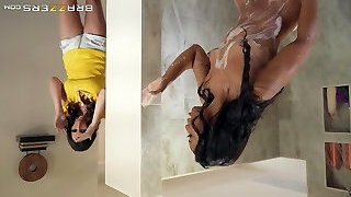 While I was taking a shower, my stepdaughter heads into the shower for me to fuck her small pussy and milk her hefty tits