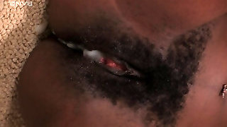 Curly haired black teen babe Jamie Sullivan gets a huge jism shot