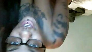 Superb interracial all girl sex between a black haired emo chick and a skinny Asian girl with cute tan