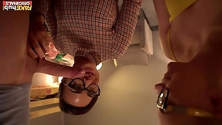 Small Titted Dark-haired Wih Big, Black Glasses Is Riding A Rock Hard Meat Stick And Enjoying It