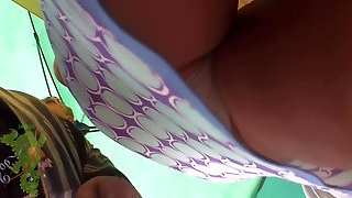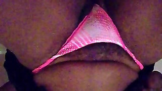Senior sexy Lukerya. Long pantaloons with lace cut into the pussy. Bottom sight. Furry pussy and big round ass.