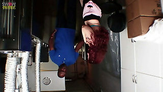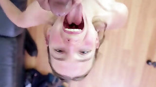 Pale redhead mormon teen Abbey Rain in her first interracial anal invasion experience with a friend threesome
