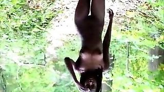 Super lithe black hottie Demi Sutra does a hand-stand while being fucked