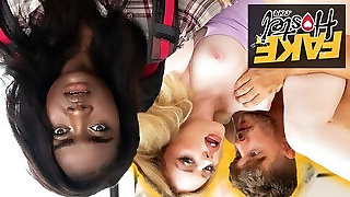 Having a cute babe laying in their bed makes it impossible not to have an interracial lesbian three way