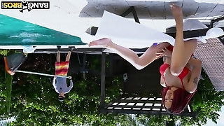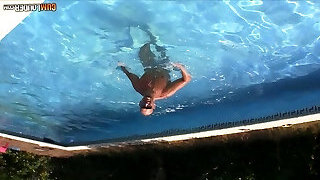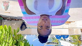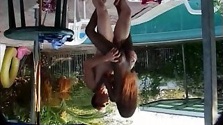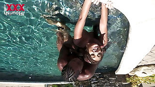 I pummel with my homie in the pool until we jizm, we wait for the gardener to join- BlackBarbie